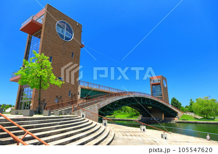 【富山県】晴天の富岩運河環水公園と富岩水上ライン