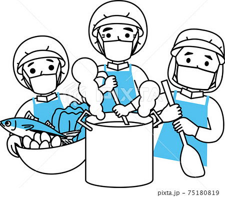調理補助 キッチンスタッフ 給食 調理場 手描き