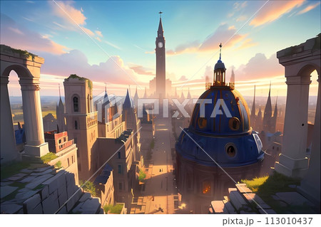 RPGファンタジーゲーム背景古代文明神殿と王宮お城遺跡