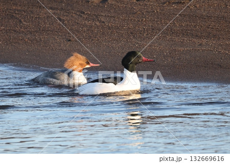 カワアイサのつがい