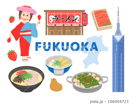 福岡の名物のイラストセット