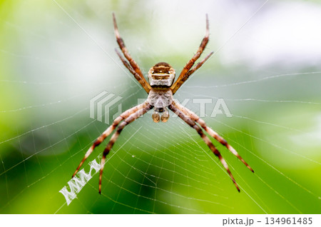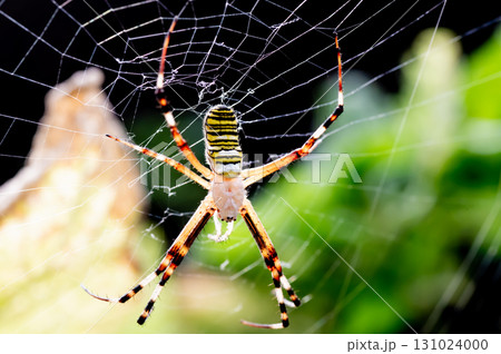 Argiope bruennichi spider on a web and leaf background