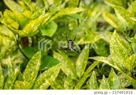 Argiope amoena spider in garden foliage, Takayama, Japan