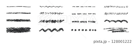 Charcoal underline set. Pencil scribble lines pack. Chalk doodle rough strokes. Grunge uneven elements. Crayon emphasis shapes. Vector hand drawn collection illustration isolated on white background