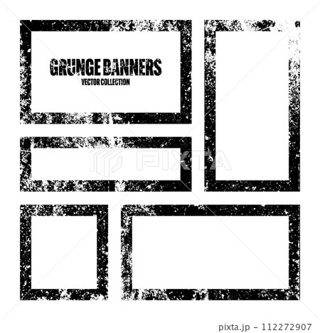 Grunge square frames, banners with stains and scratches. Brush stroke, rectangular shape design element. Distressed dirty text frame, border. Paintbrush, ink stains. Vector illustration