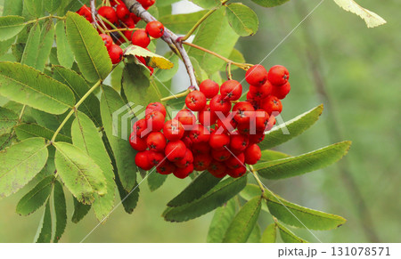 赤いナナカマドの実と緑の葉