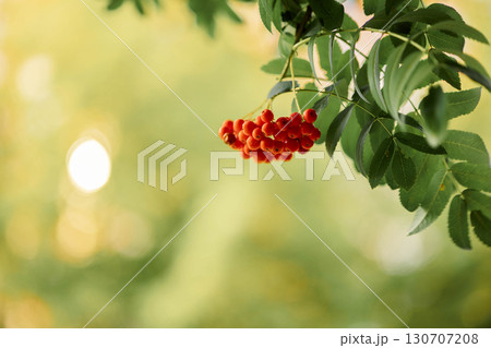 Harvest concept. Autumn rowan berries on branch. Rowan berries sour but rich vitamin C.