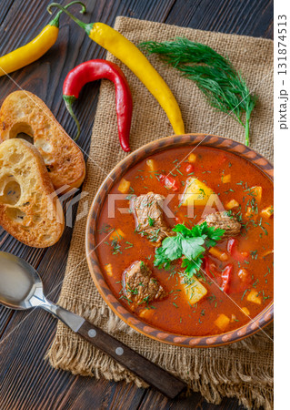 Braised beef meat with vegetables, goulash