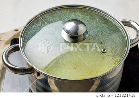 pot with a closed, dewy lid