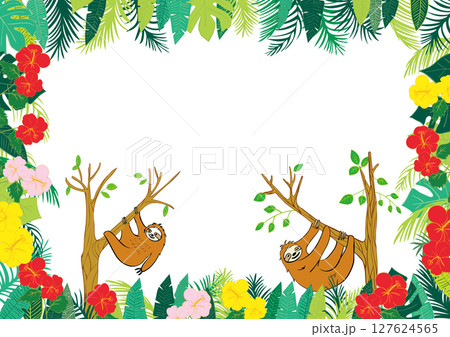 ナマケモノとトゥーカンと南国植物のフレーム1