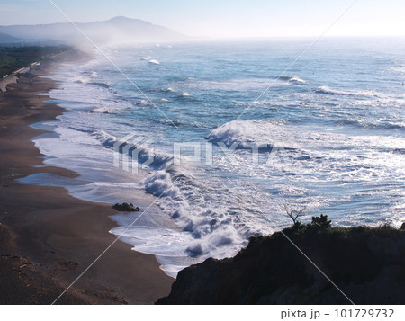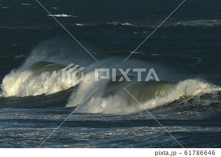 台風接近により伊良湖岬に打ち寄せる荒波の波頭