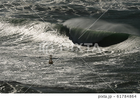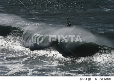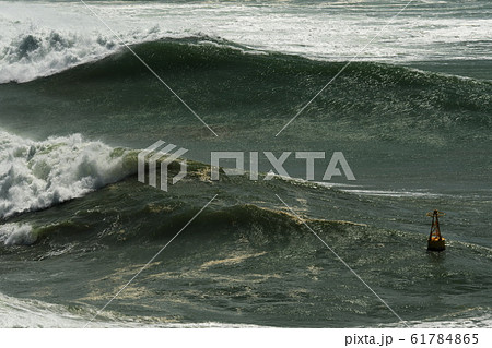 台風接近により伊良湖岬に打ち寄せる荒波にほんろうされるブイ