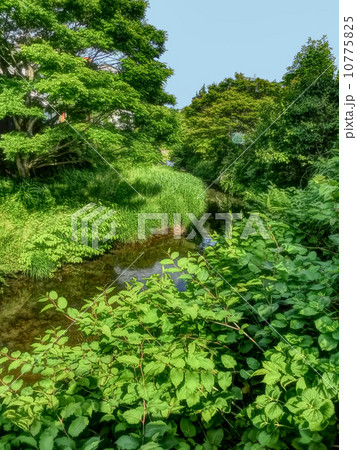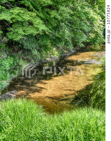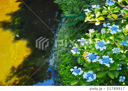 水に映る青空、鎌倉の川と空、空と川、川に映る青空、川にうつる青空、綺麗な川の風景、滑川沿いの風景