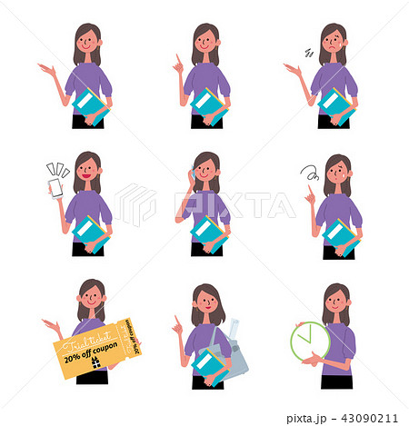 本を持つ女性 仕草 全身 イラスト