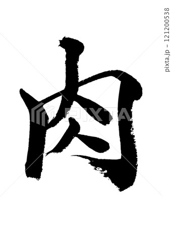 筆文字素材の手書きロゴの【肉】 墨で書いお肉のイラスト文字