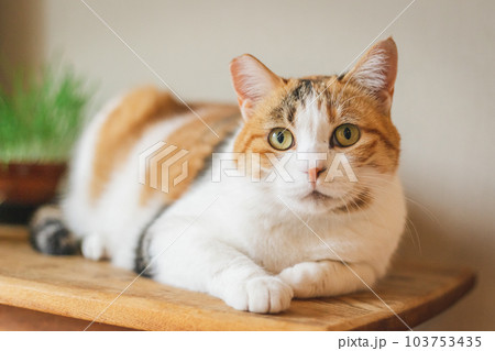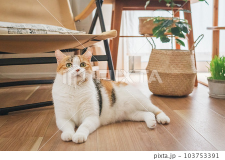 室内飼いの可愛い三毛猫