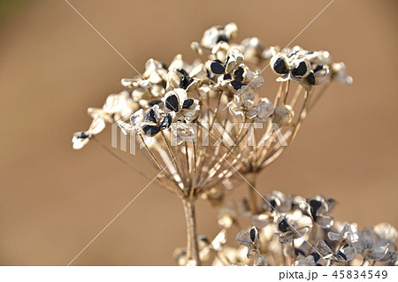 実がはじけて露出したニラの種