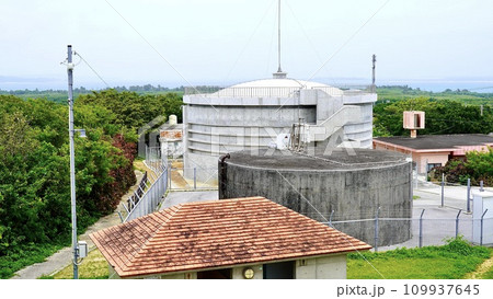 沖縄県津堅島のにんじんの形をした展望台から見える風景