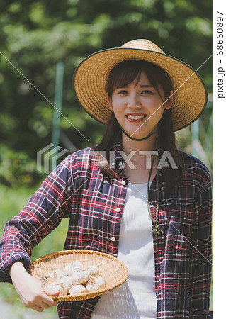 獲れたてニンニク 新鮮にんにく にんにく畑 イメージ素材