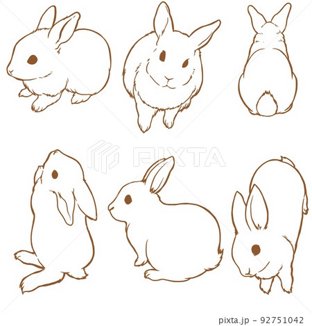 うさぎ6匹線画