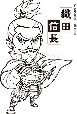 武装して立つ織田信長【3頭身・白黒・ベクター】