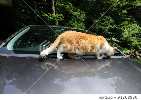福島 福島市 微温湯温泉 ボンネットでくつろぐネコちゃん