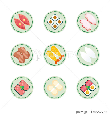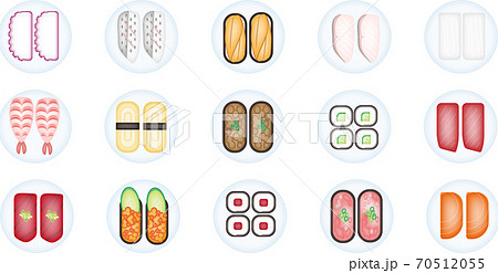 色々なお寿司のイラスト(にぎり寿司、江戸前寿司、助六寿司、回転すし)