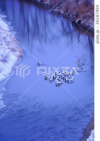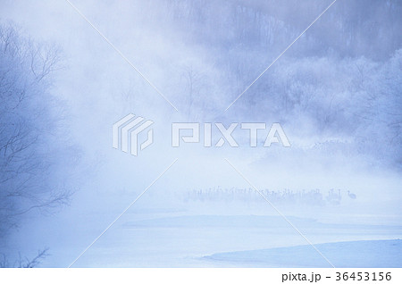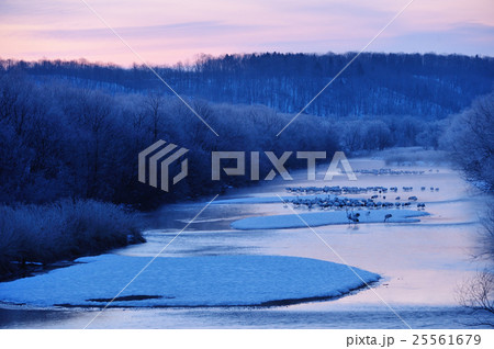 北海道 鶴居村 タンチョウのねぐら 真冬の雪裡川