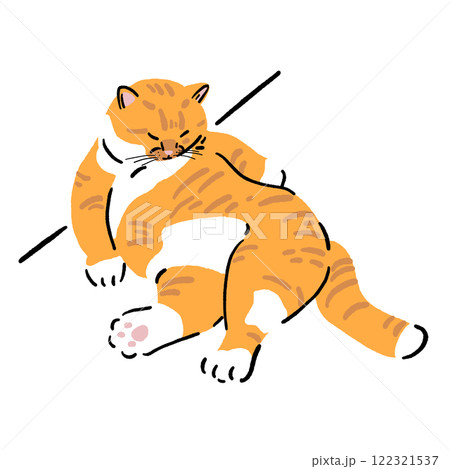Ginger cat lay down lazy pose Hand drawn Color illustration