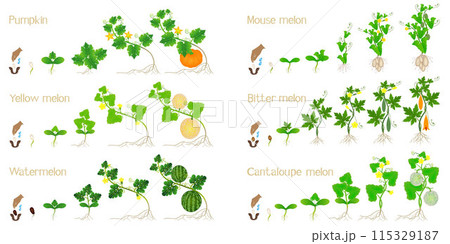 Cycle of growth of melothria scabra aka cucamelon or mouse melon plant.