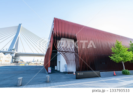 青森の街並み 晴れた日のねぶたの家 ワ・ラッセと青森ベイブリッジ