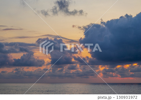 The Serene Sunset Over a Calm Beach with Beautiful Clouds Creates an Idyllic Scene