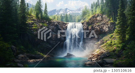 Majestic Waterfall in Lush Forest Landscape