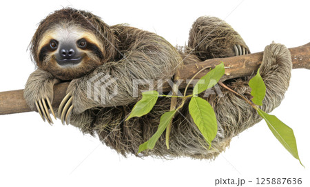 Hanging Sloth on Branch with Leaves