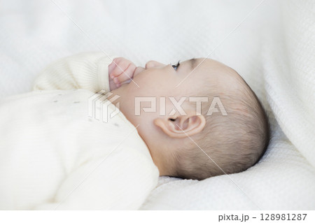 白い布に包まれて寝ている赤ちゃん