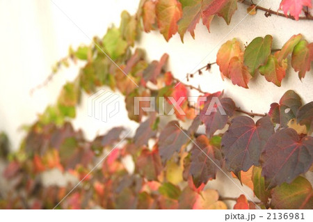 レンガ壁をはう紅葉した蔦