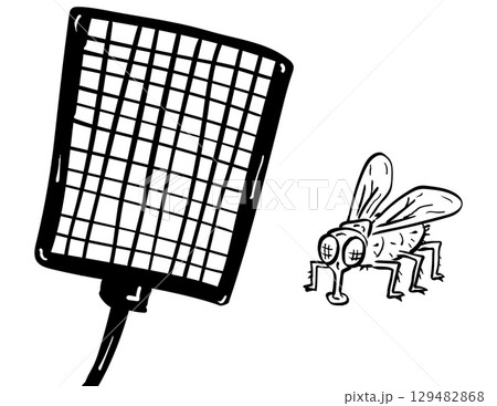 Fly Swatter and Housefly Swatted Cartoon Drawing