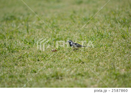 芝生の上を歩くハクセキレイ