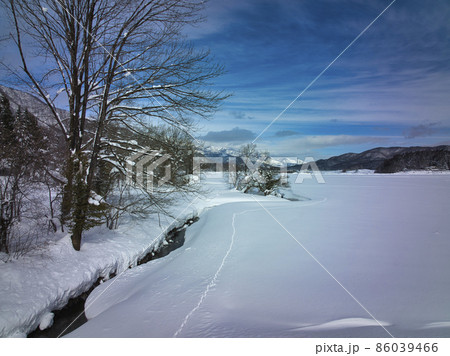 深い雪に包まれた姫川源流域 長野県白馬村(ドローンによる空撮)