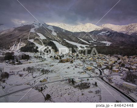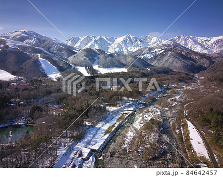 雄大な白馬連山と岩岳スキー場 長野県白馬村(ドローンによる空撮)