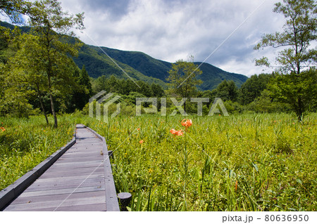 美しいオニユリと夏の親海湿原 長野県白馬村