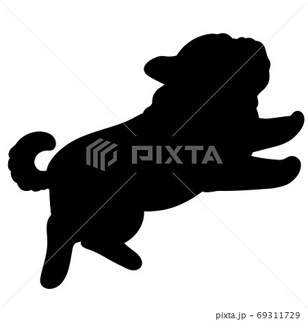 ジャンプするかわいい黒いパグのイラスト 主線あり
