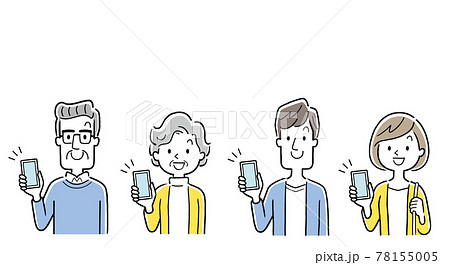 ベクターイラスト素材:スマホを持つ若い世代とシニア世代の男女