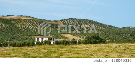 panoramic view over olive orchards in Iznajar, Spain