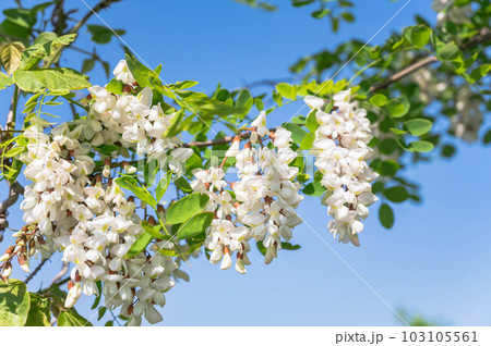 初夏に咲く、蜂蜜の蜜源、ニセアカシアの花
