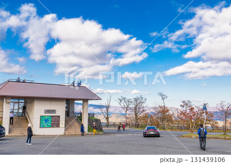 発荷峠展望台からの雄大な十和田湖の眺め 秋田県小坂町(ドローンによる空撮)