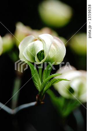 花水木の華やかな総苞(萼片)の中心に咲く可愛い緑の集合花・横位置