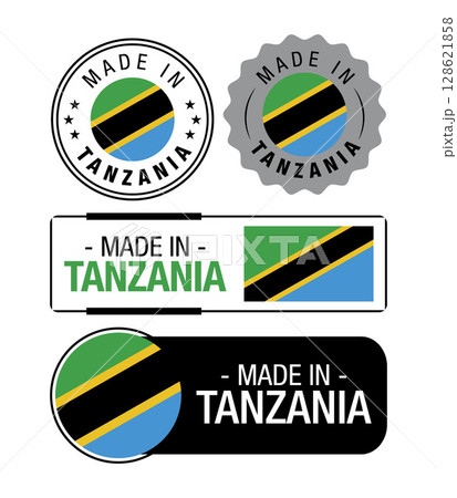 Set of Made in Tanzania labels, logo, Tanzania flag, Tanzania Product Emblem. Vector illustration