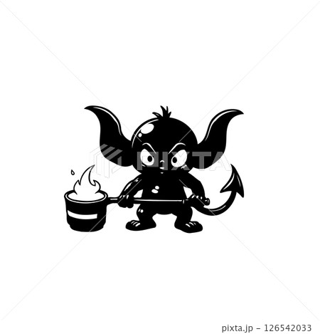 Playful imp wielding a bucket of creamy substance, a whimsical monochrome