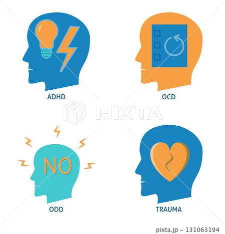 ODD Oppositional Defiant Disorder text with Stethoscope and magnifying glass on blue background